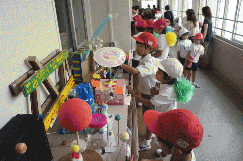 夏休みの間に子ども達が取り組んだ工作や自由研究を見学する日です。
