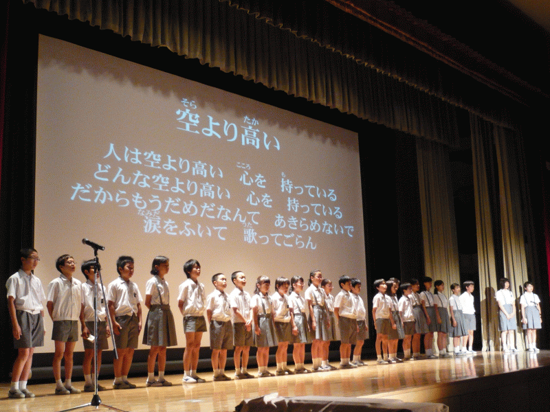 今日は児童集会。学年ごとに歌の発表をしました。