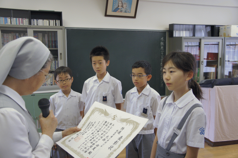 今日は大阪日日新聞「母の日作文コンクール」で賞に選ばれた子どもたちの表彰が行われました。
