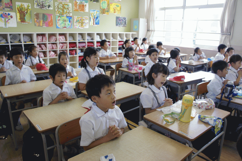この食事に感謝して、お祈りをします。1年生はお祈りも上手になりましたね〜