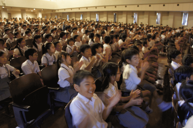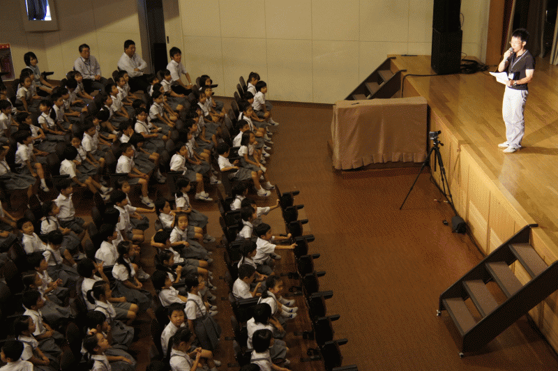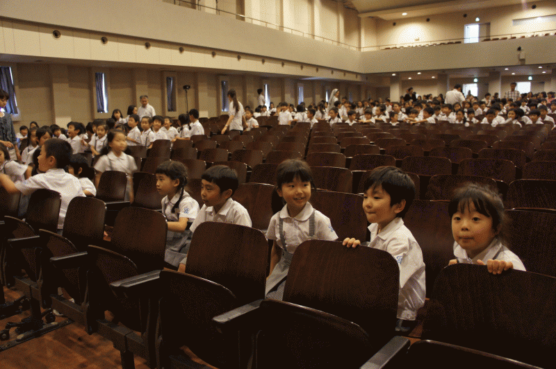 読書月間中ですが、今日は朝から講堂に子どもたちが集まっています。