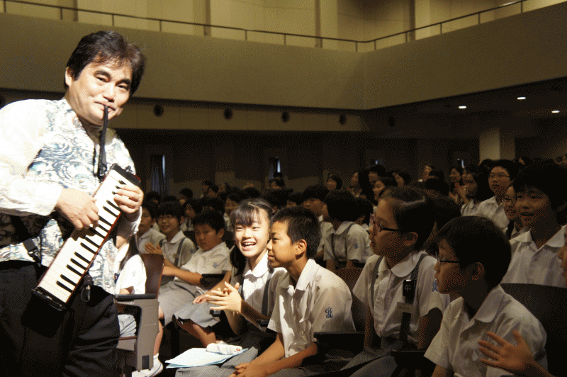 子どもたちが低学年で学習するピアニカが、昌さんが弾くとまるで違う楽器のように様々な顔を見せます。