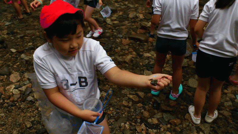 川では魚や昆虫を捕まえました。どんな生き物たちがいたのかな?