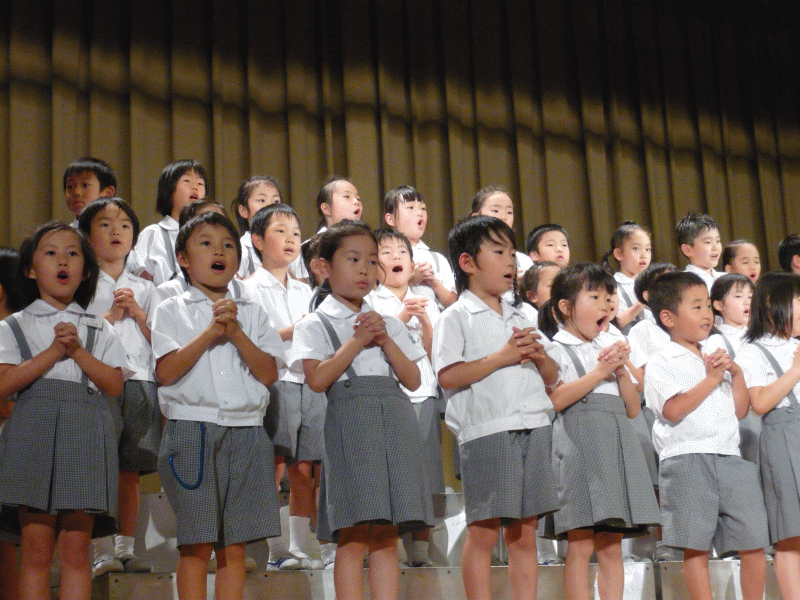 1年生はドラえもんの歌と聖歌をしっかりと歌いました!