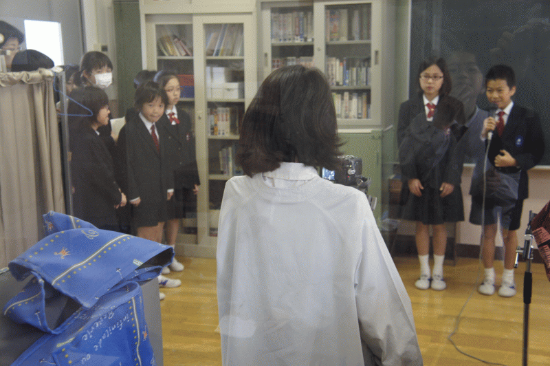 「校長先生こんにちは!」「私は本を読むのが好きです」子どもたちが校長先生にご挨拶をしています。