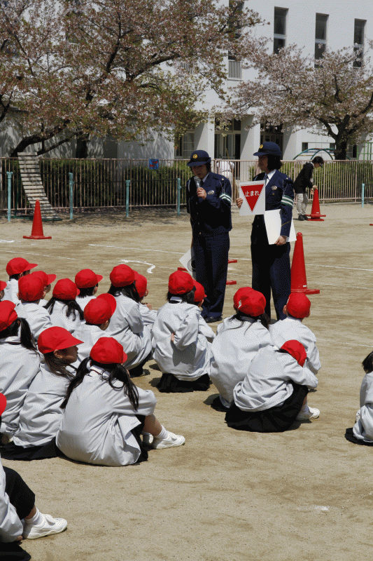 今日1年生は交通安全教室を行いました。